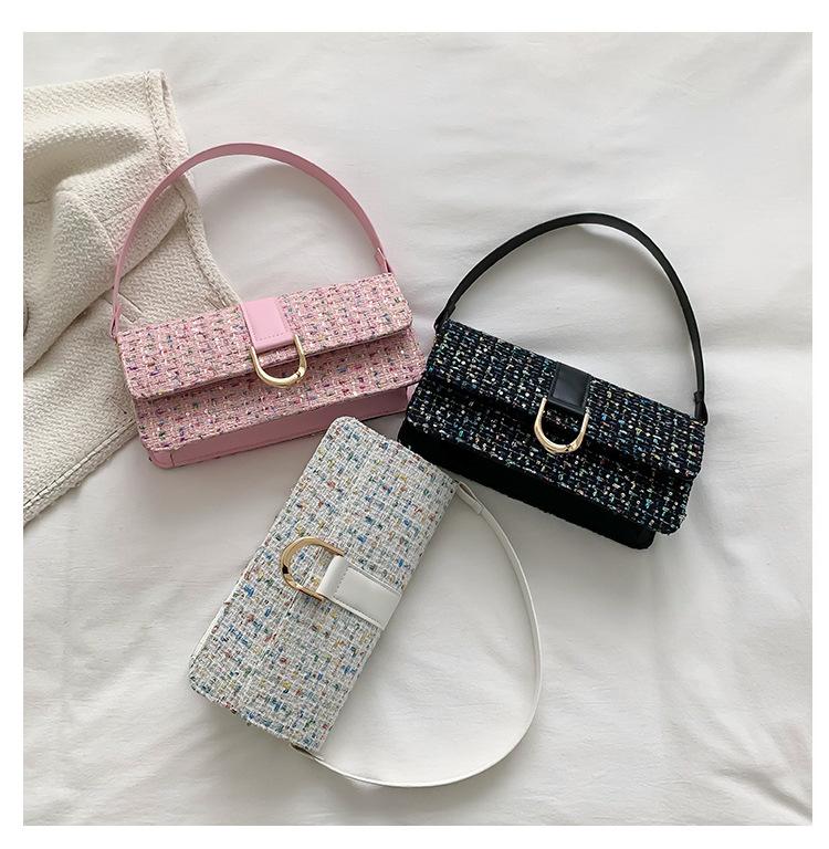 Women Medium Canvas Solid Color Streetwear Square Magnetic Buckle Underarm Bags
