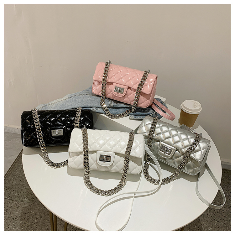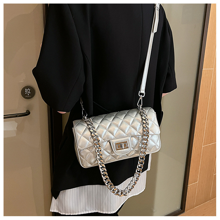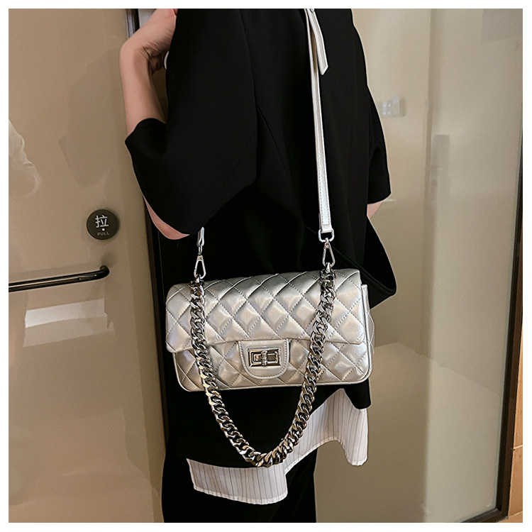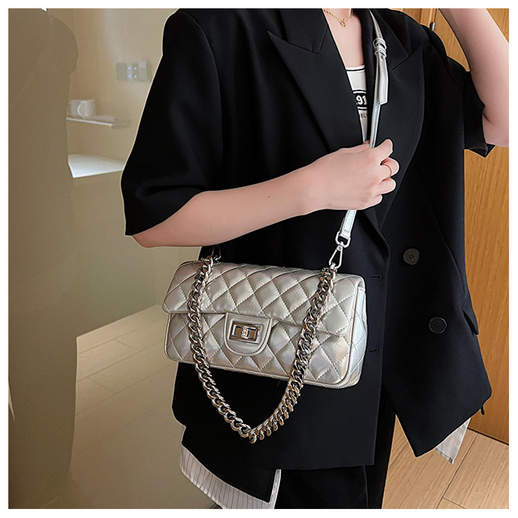 Women Medium Summer Lingge Streetwear Chain Square Lock Clasp Square Bags