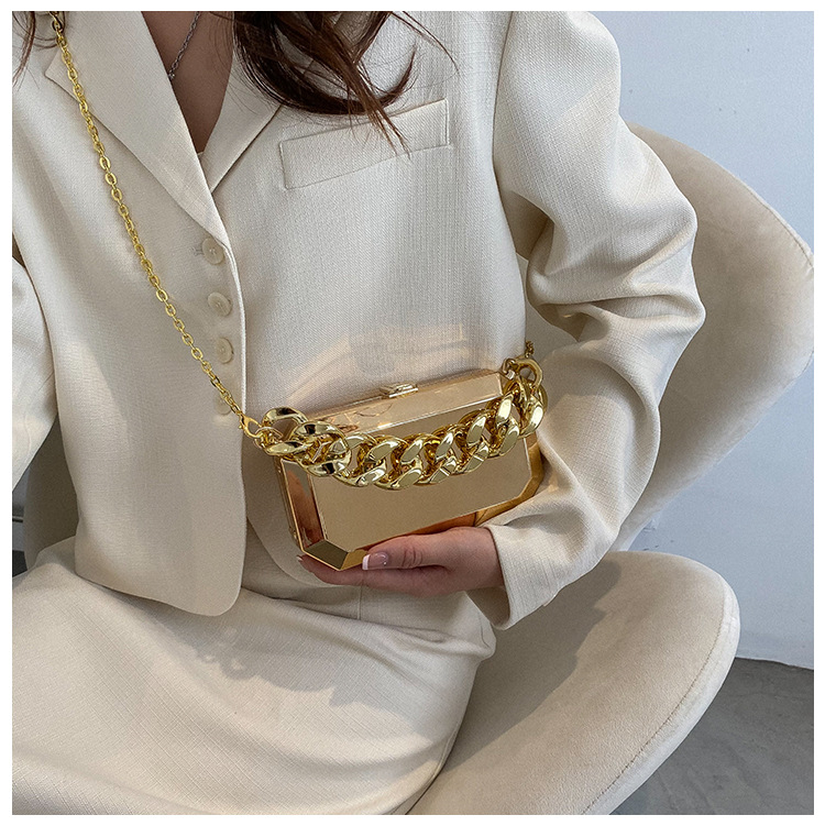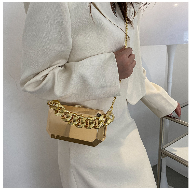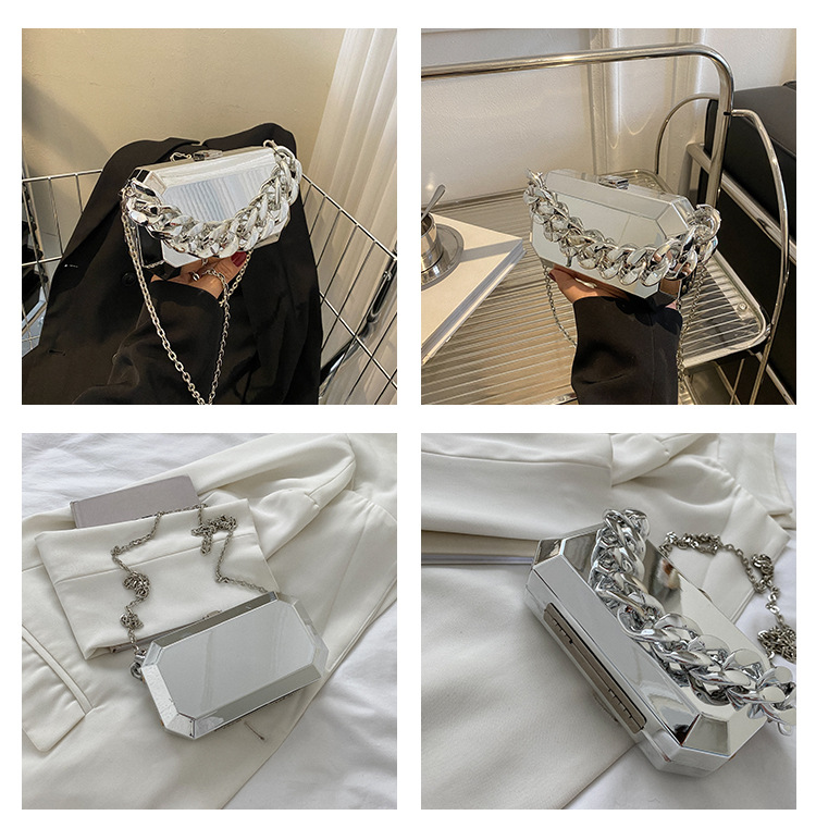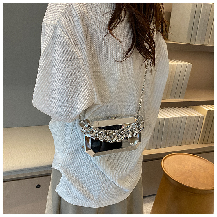 Women Small Arylic Solid Color Streetwear Chain Square Lock Clasp Crossbody Bags