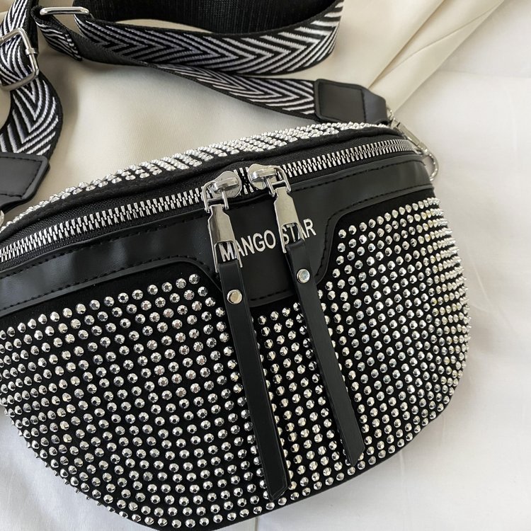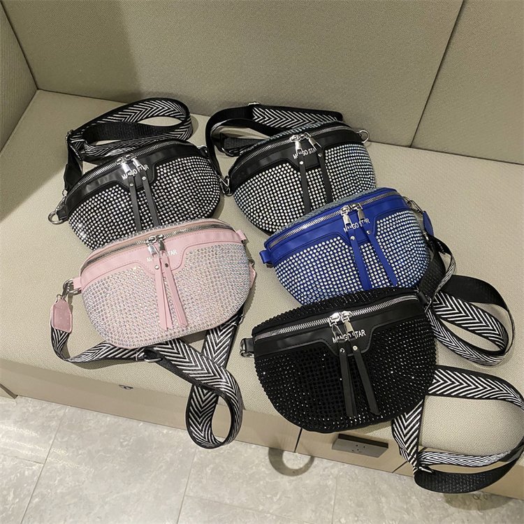 Women Solid Color Streetwear Tassel Rivet Semicircle Zipper Shoulder Bags Crossbody Bags Fanny Pack